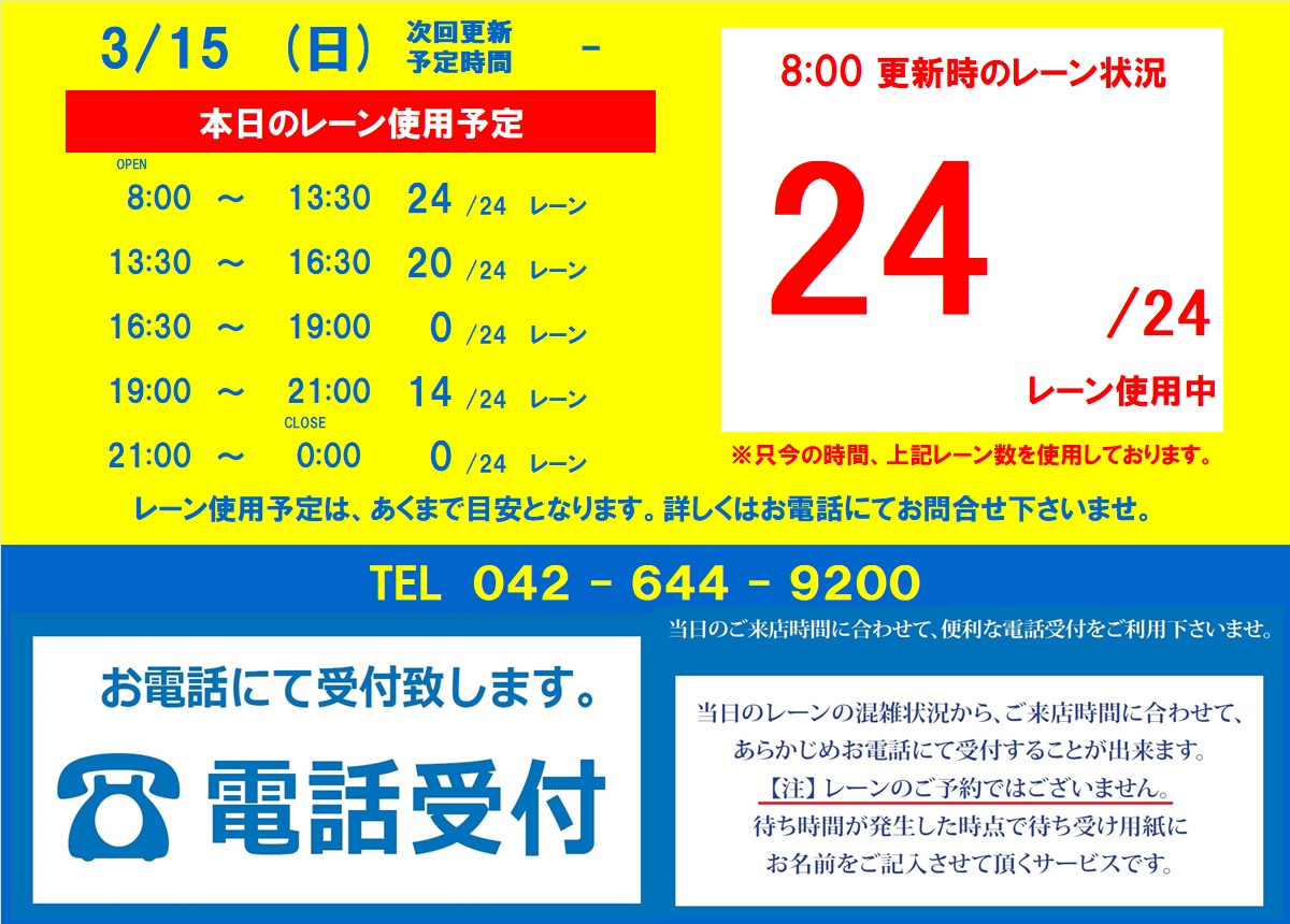 当日の混雑状況はお電話にてお答えしております。