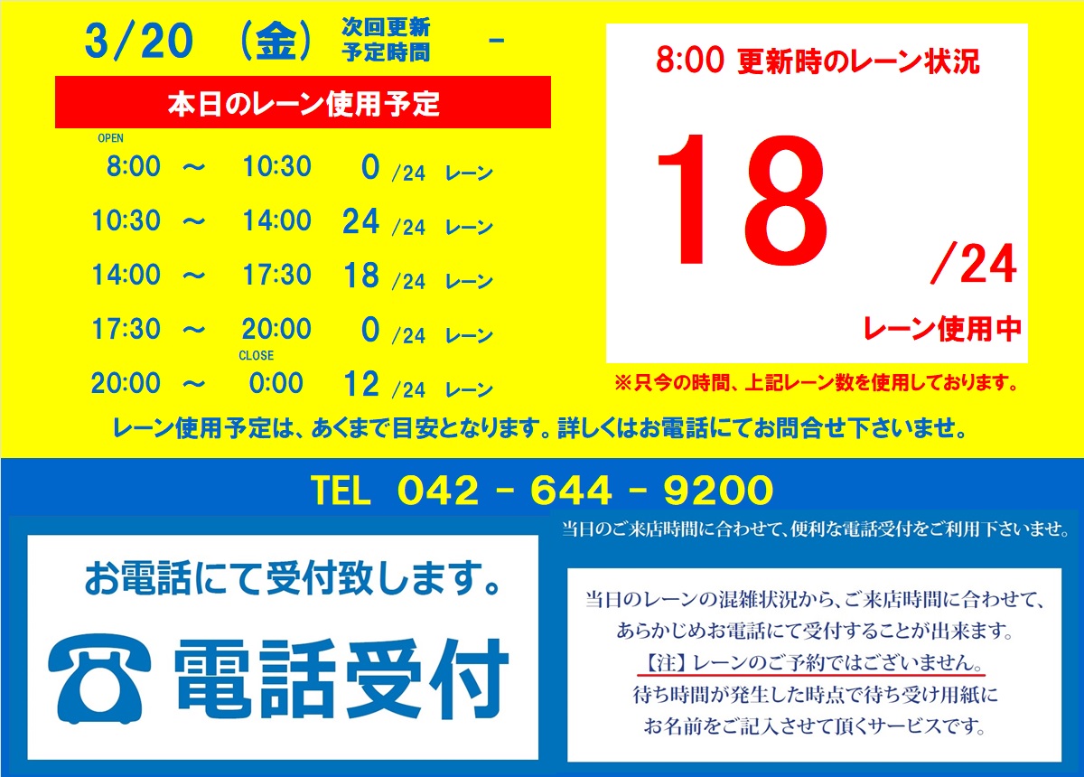 当日の混雑状況はお電話にてお答えしております。